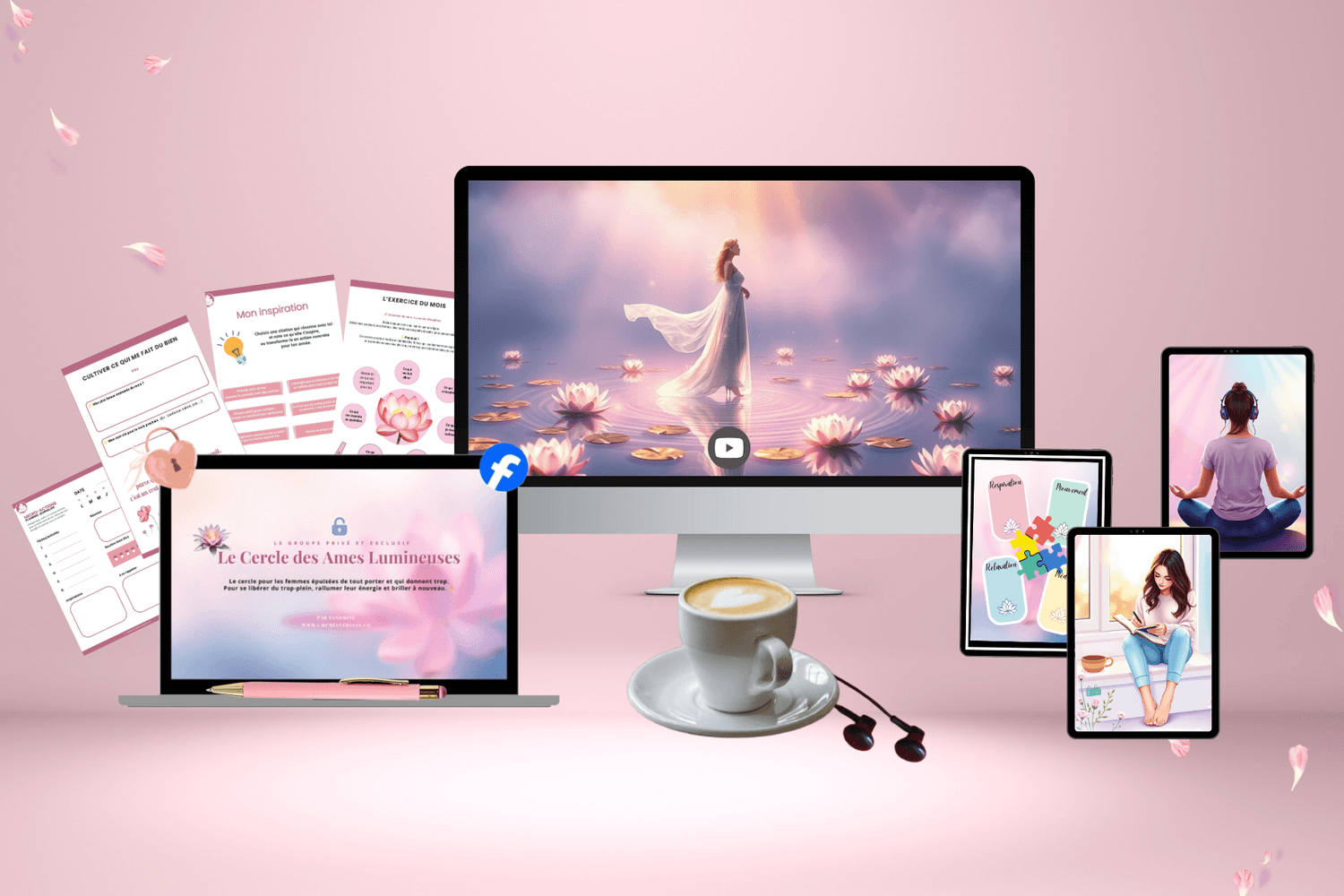 Les ressources du Cercle des Âmes Lumineuses ont conçues pour s’adapter à votre quotidien et compléter vos pratiques existantes, sans surcharge.